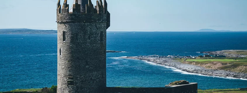 In dit kasteel werden 170 zeelieden opgehangen die ontsnapten aan de ondergang van de Spaanse Armada in 1588. Nu is dit bescheiden kasteel privébezit en gesloten voor het publiek. Maar dat geeft niet, Dunagor heeft het landschap van de Atlantische kust harmonieus aangevuld. De plek is geweldig voor wandelingen en fotoshoots in de buitenlucht. De wandeling kan worden gecombineerd met een bezoek aan de Cliffs of Moher.